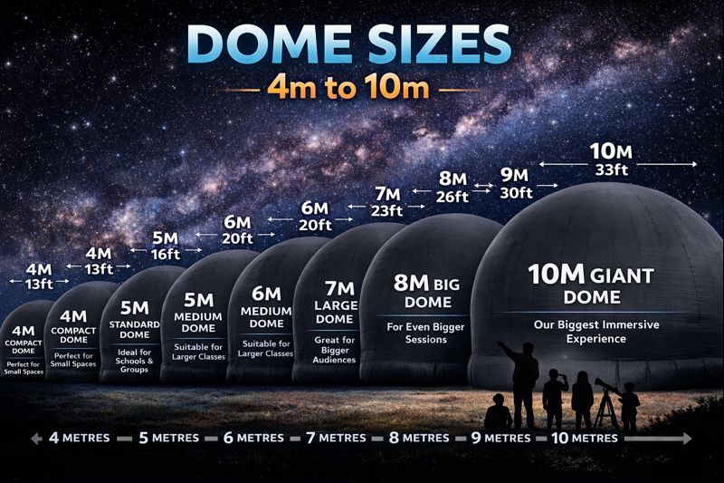 Our mobile planetarium domes bring the cosmos into school halls, community venues, museums, festivals, and events — meaning every audience can explore stars, planets, galaxies, black holes, and deep space without leaving the room.